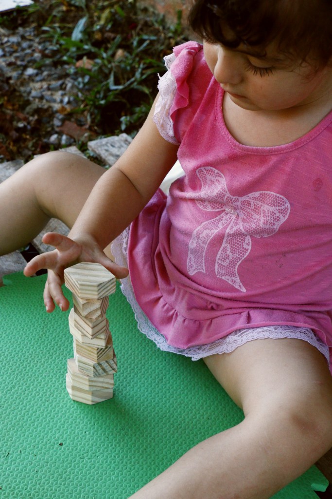 O brinquedo “Empilha ou tomba?” tem como objetivo o desenvolvimento motor das crianças.