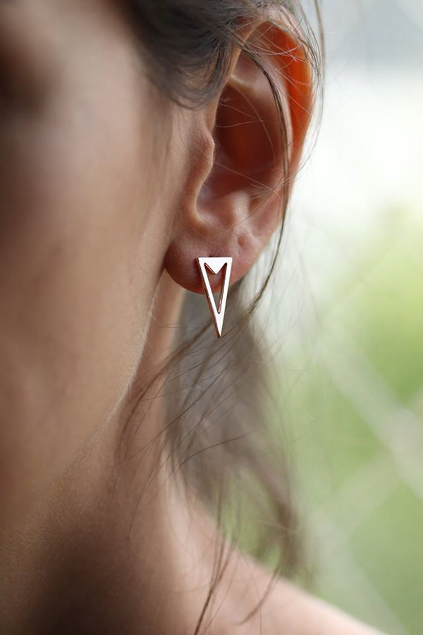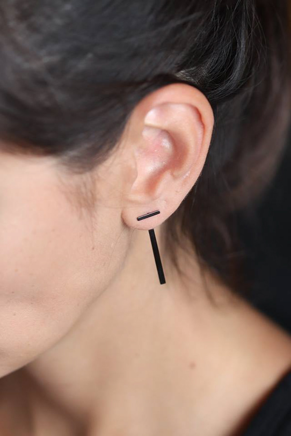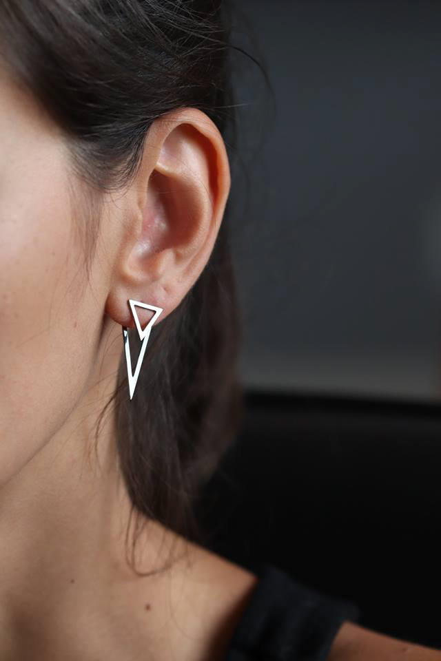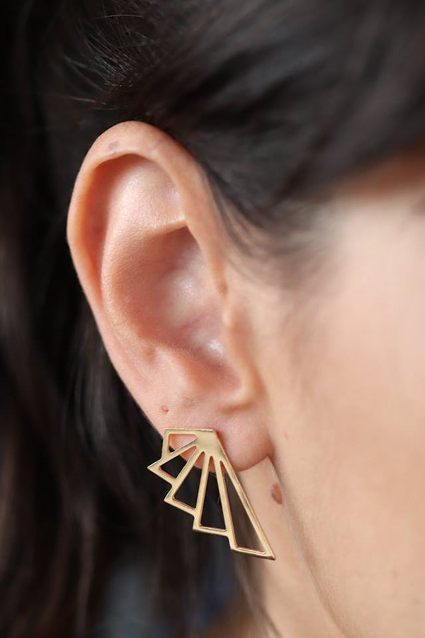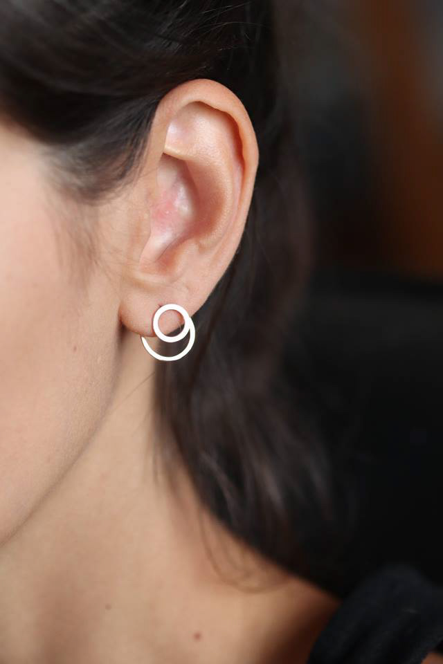 Brincos duplos: um brinco e uma peça que se prende ao pino do brinco. Pode ser usada na frente ou atrás da orelha.