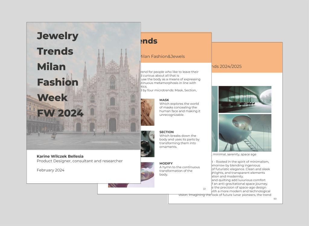 Content produced by designer Karine Wilczek Bellesia based on experiences, studies, and research conducted during Milan Fashion Week in February 2024.