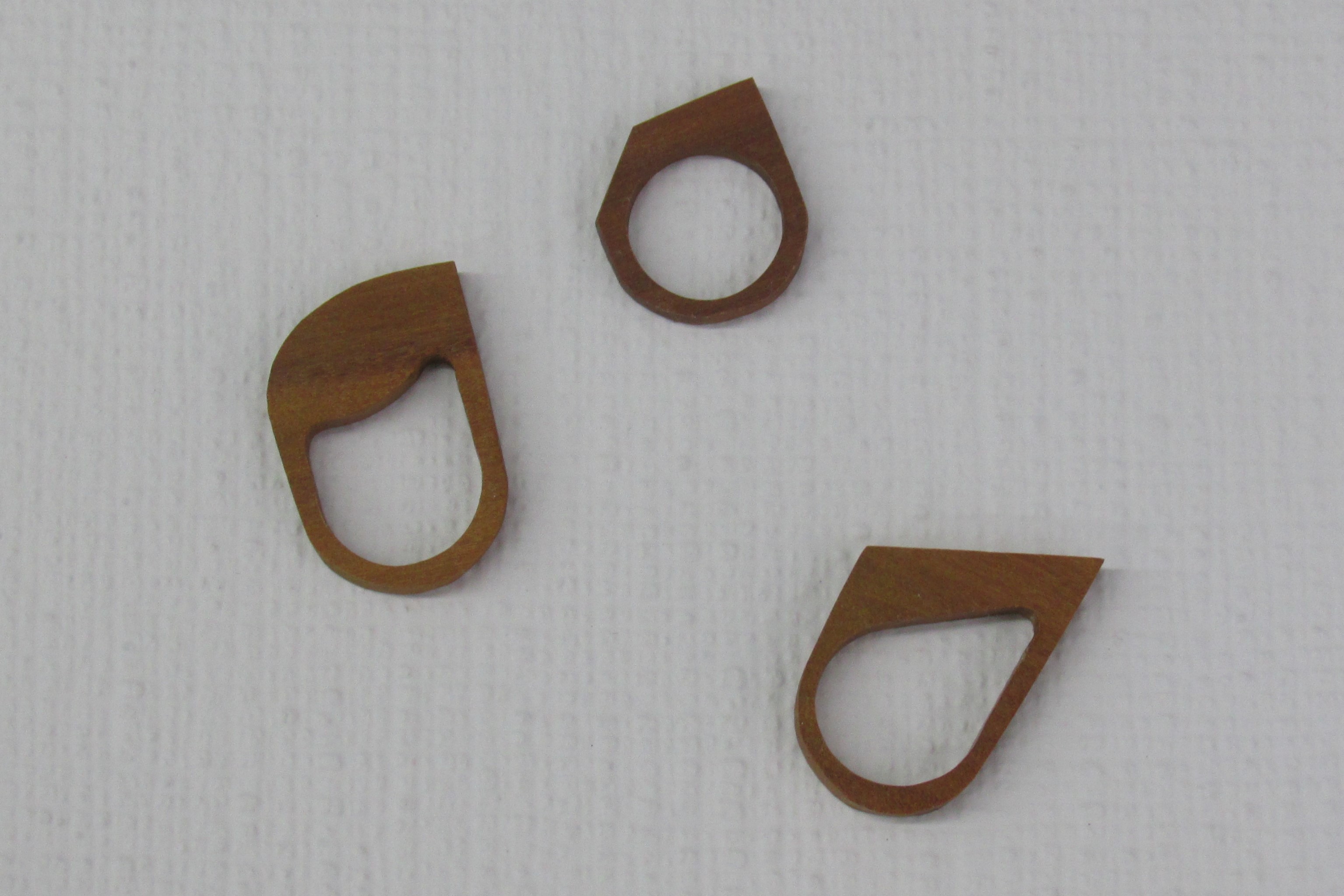 A coleção de joias contemporâneas Madê é composta por colares, brincos e anéis produzidos em madeira peroba.