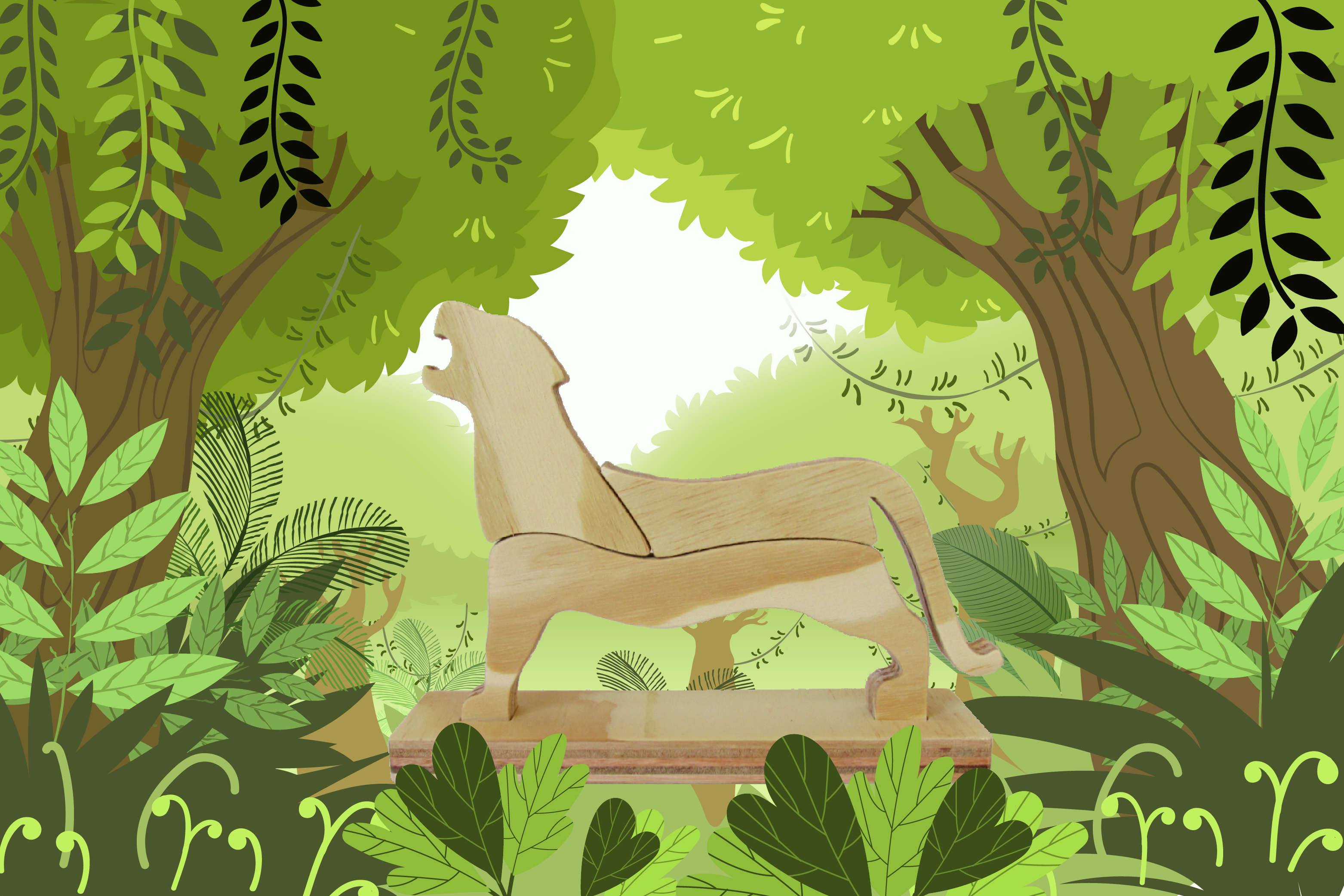 ROAR é um brinquedo de madeira que combina o quebra-cabeça com empilhamento e tem como objetivo auxiliar o desenvolvimento motor das crianças.